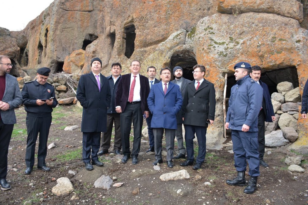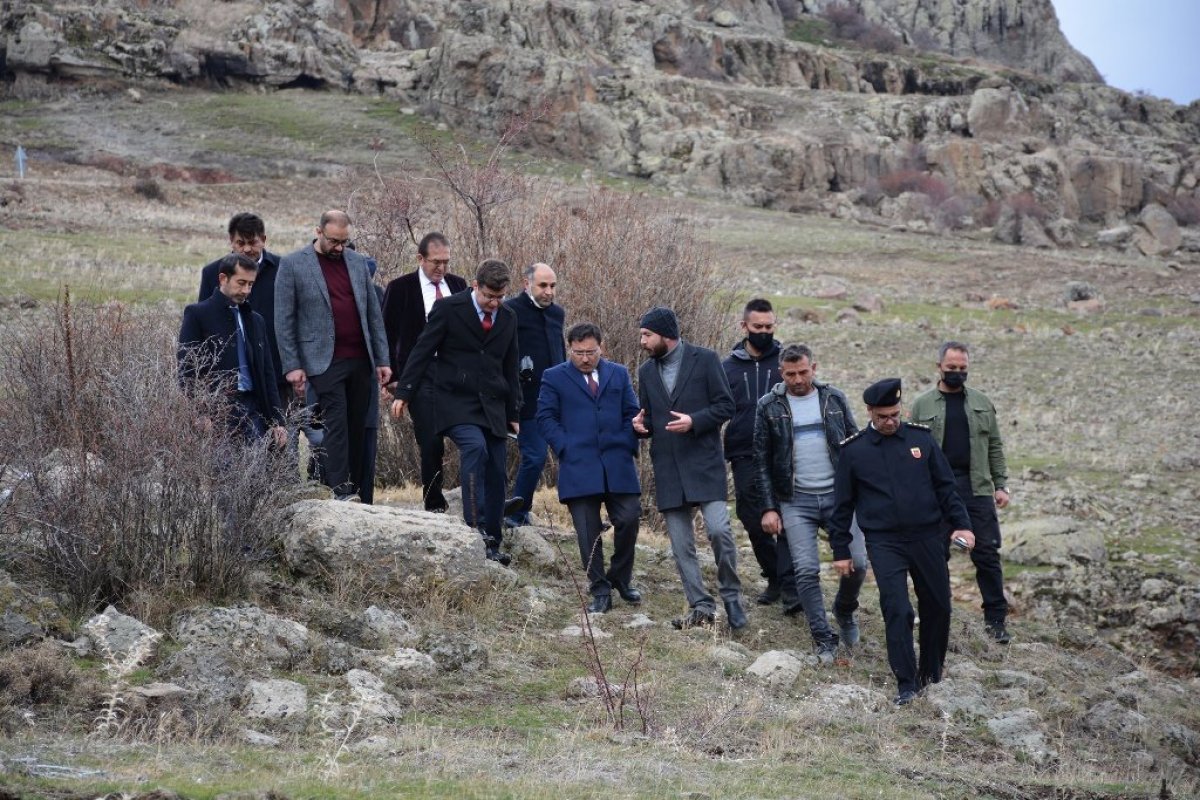 Afyonkarahisar Valimiz Sayın Gökmen Çiçek beraberinde İl Emniyet Müdürü Ali Temiz ve İl Jandarma Komutanı Yılmaz Kırgel ile bir dizi temas ve incelemelerde bulunmak üzere ilçemize geldi. Vali Çiçek’in ilk durağı Şuhut Kaymakamlığı oldu. Hükümet Konağı önünde yapılan karşılamaya, İlçe Kaymakamı Lokman Düzgün, Belediye Başkanı Recep Bozkurt ve İlçe protokolü hazır bulundu. Kaymakamlık Makamında Kaymakam Düzgün’den İlçemizde yapılan iş ve işlemler için bilgi alan Vali çiçek daha sonra Şuhut Belediyesi tarafından hayata geçirilen “Şuhutlu Şehit ve Gaziler Hatıra Merkezi” ni ziyaret etti. Türkiye’de ilk olan Hatıra Merkezini en ince detaylarına kadar inceleyen Vali Çiçek, Belediye Başkanı Recep Bozkurt’a ve emeği geçenlere bu örnek projeyi hayata geçirdikleri için teşekkür etti. Vali Gökmen çiçek incelemelerine İlçemize yeni kazandırılan Şuhut Gençlik Merkezi, Şuhut Kadın Kültür Evi, Şuhut Keşkek Evi, Şuhut Kadın Kooperatifi Üretim Atölyesi ve yapımı devam eden İlçe Emniyet Müdürlüğü Hizmet binasını inşaatında incelemelerde bulunarak çalışmalar hakkında yetkililerden bilgi aldı. Ziyaretler esnasında Şuhut Hisar Spor Yönetim Kurulu Başkanı Abdullah Zeybek Vali Çiçek ve beraberindeki heyete Şuhut Hisar Spor forması hediye ederek sportif çalışmalar hakkında bilgi verdi. Vali Gökmen Çiçek’in son durağı ise İlçemize bağlı Senir Köyü sınırları içerisinde bulunan ve Turizme kazandırılacak olan Bininler kayalıkları oldu. Yaptığı açıklamada Vali Çiçek şunları söyledi; Gizemli Şehir Afyonkarahisar diyoruz ya.. işte yine Afyonkarahisar’ımızın gizemli bir noktasında buluştuk. Kaymakamımız, Belediye Başkanımız, İl Genel Meclis Üyelerimiz hep beraber Şuhut İlçesine Bağlı Senir Köyü sınırları içerisinde bulunan Bininler tepesindeyiz. Burada özellikle Friglerden kalma, isminden de anlaşılacağı gibi mağaralar, yerleşim yeri, özellikle mezarlar ve muhteşem bir doğa var. Uzun zamandır burası ile alakalı düşüncelerimiz vardı fakat bugün buraya gelmek nasip oldu. İnşallah Valiliğimiz, Kaymakamlığımız, Belediyemiz, İlçedeki arkadaşlar, İl Genel Meclis Üyelerimiz el ele vererek çok yakın zamanda Afyonkarahisar’lıların daha çok gelmeleri sağlayacak tesislerle buluşturacağız. Çalışmalara yarından itibaren inşallah başlıyoruz. Burası herkesin görmesi gereken nokta haline gelecek inşallah. Heyecanlıyız.. yine gizemli şehrin farklı bir noktasındaki gizemini hep birlikte çözeceğiz inşallah dedi. Belediye Başkanımız Recep Bozkurt konu ile alakalı yaptığı açıklamada; “İlçemiz Senir Köyü sınırları içerisinde bulunan Bininler kaya evlerinin bilinen kişiler tarafından ziyaret edildiğini, ama yapılacak çalışmadan sonra bölgeye çekilmesi planlanan yerli ve yabancı turistler sayesinde ilçe ekonomisine katkı sağlayacak ve Sayın valimizin de söylediği gibi Gizemli Şehir Afyonkarahisar’ımızın bir gizemli noktası daha hak ettiği noktaya getirilerek Frig'ler dönemine ait tarihin canlanması sağlanacaktır. Valiliğimiz, Kaymakamlığımız, Belediyemizin, İl Genel Meclis üyelerimizin ve Özel İdaremizin katkı ve destekleri ile Bininler Kaya evleri en kısa zamanda turizme açılacaktır. Sayın valimize ve beraberindeki heyete ilçemizi ziyaretlerinden dolayı teşekkür ediyorum.” İfadelerine yer verdi.