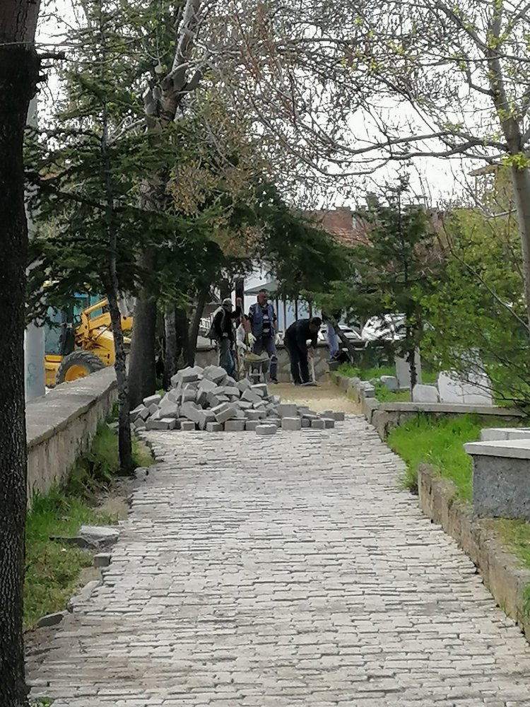 Vatandaşlarımızın ziyaretlerini daha rahat yapabilmeleri için yürüyüş yollarının bakımları yapılarak kilit parke taşı döşeme ve