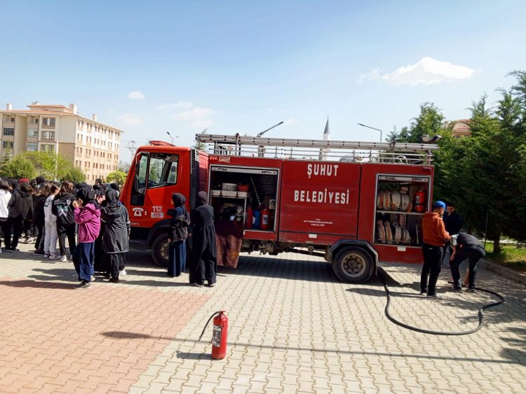 Şuhut Belediyesi İtfaiye ekipleri, ilçemizin gençlerine yangın durumlarında nasıl doğru tepkiler verileceği konusunda bilinçlendirme amacıyla Kız Anadolu İmam Hatip Lisesi'nde bir tatbikat gerçekleştirdi.