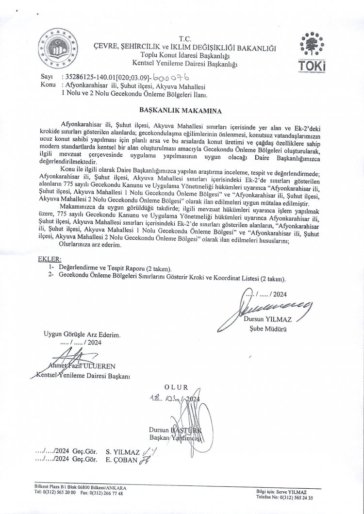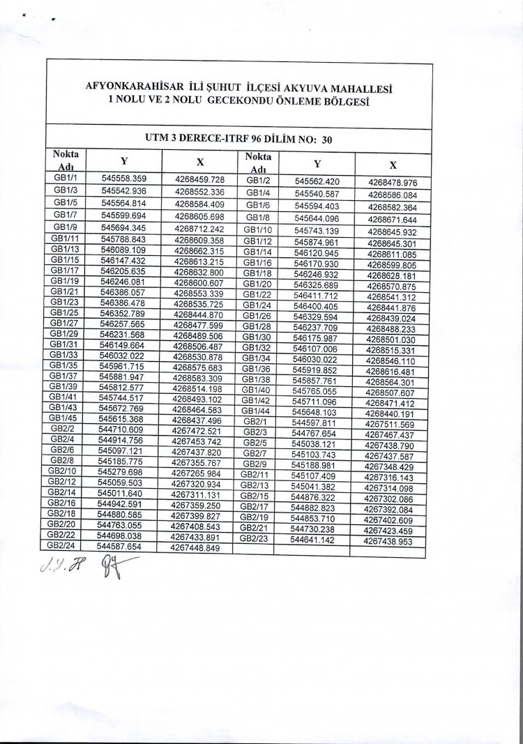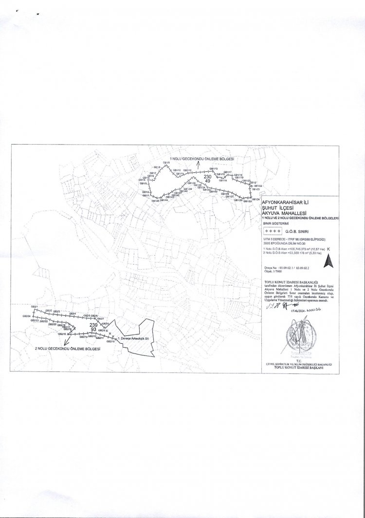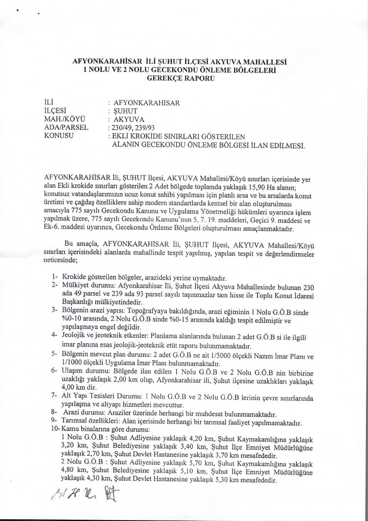 AFYONKARAHİSAR İLİ, ŞUHUT İLÇESİ, AKYUVA MAHALLESİ 1 NOLU GECEKONDU ÖNLEME BÖLGESİ İMAR PLANI