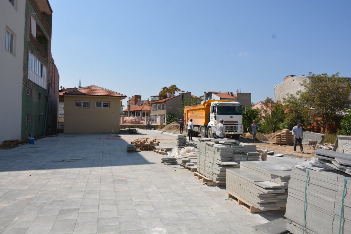 Büyük Camii restorasyon çalışmaları kapsamında tuvalet ve parke yol çalışmaları hız kesmeden devam ediyor.