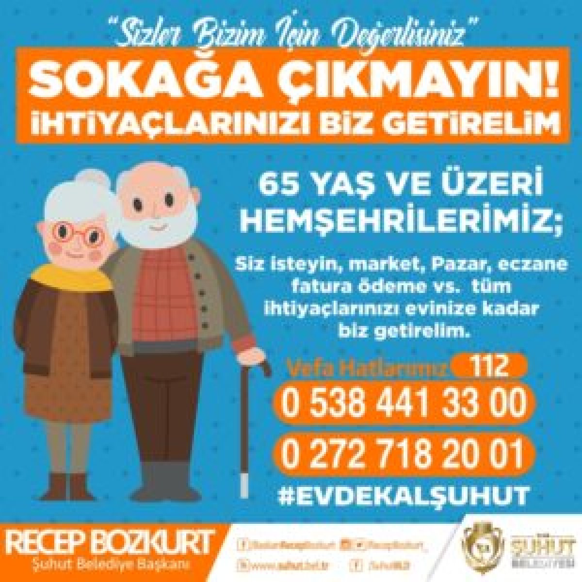 Şuhut'lu 65 yaş ve üstü büyüklerimizin market, eczane ve pazar alışverişlerini yapmaya GÖNÜLLÜYÜZ!