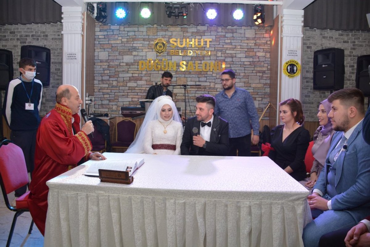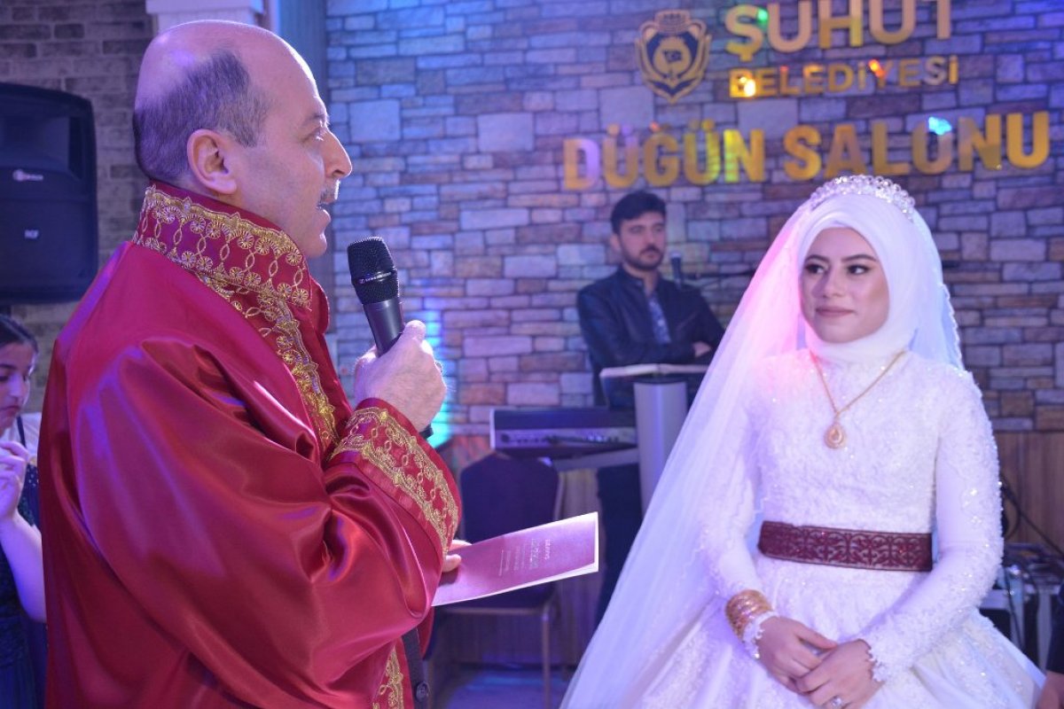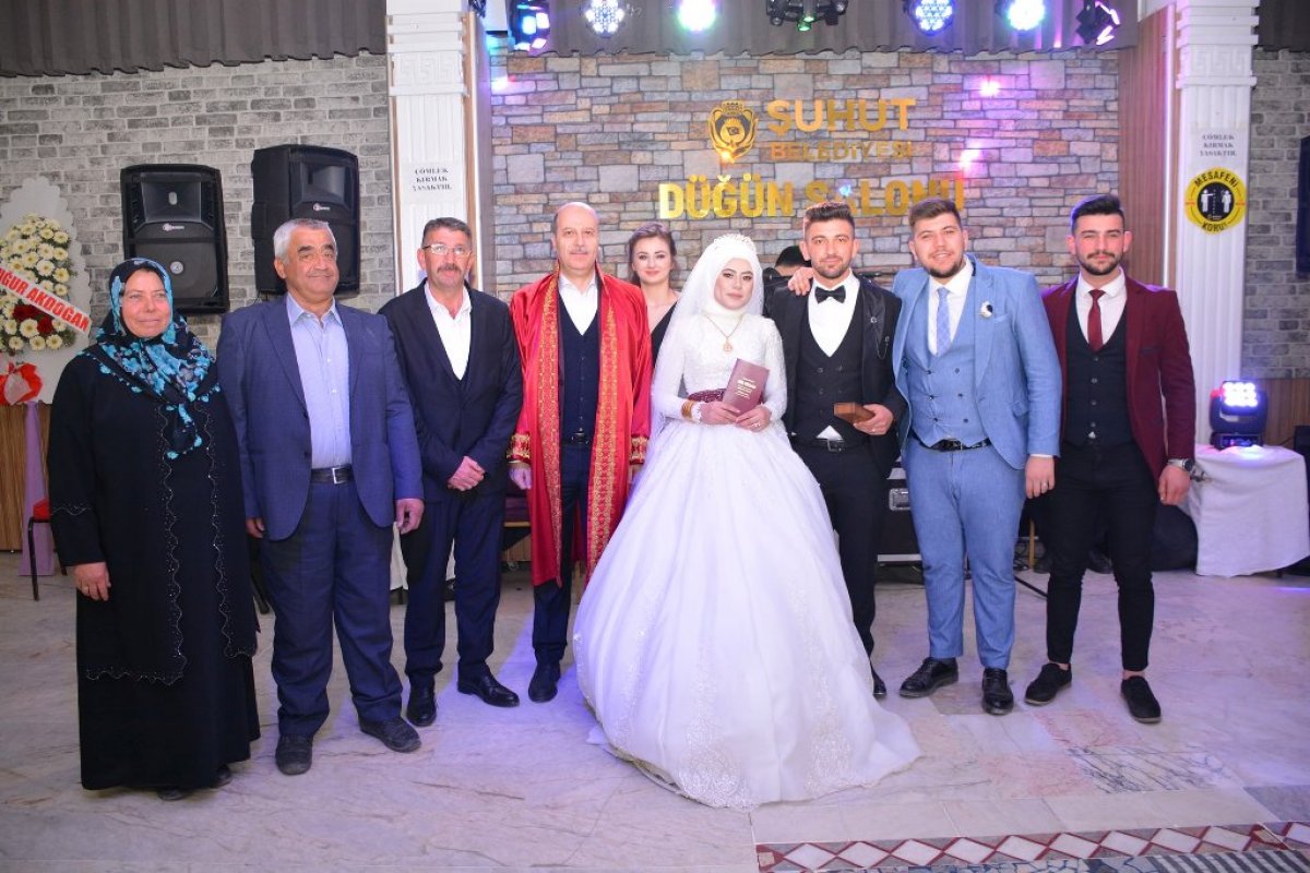 Şuhut Belediye Başkanı Recep Bozkurt hafta sonunda Kayıran ve Kaya ailelerinin evlatlarının nikâh ve düğün törenlerine katıldı. Şuhut Belediyesi düğün salonunda gerçekleşen törenine katılan Başkan Bozkurt genç çiftin nikâhlarını kıydıktan sonra Aile cüzdanını gelin hanıma teslim etti. Nikâh akdini imza ettikleri kalemi damat beye teslim eden Başkan Bozkurt nikâh töreni sonrası yaptığı konuşmada; “Bugün burada siz değerli davetlilerin huzurunda Genç kardeşlerimin mutluluğuna ortak olduk. Hatice ve Ahmet çiftimize sıcacık bir yuva, ailelerimize nice mürüvvetler ve iki cihan saadeti diliyorum. Allah sağlıklı, huzurlu mutlu bir hayat nasip etsin. dedi.