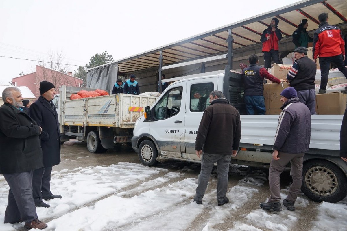 Kampanya kapsamında toplanan 65.085 TL nakdi yardım, 12 ton un, 5 ton soğan, 4 ton patetes, 9 adet soba, 400 kg salça, 200 çift bot ve ayakkabı, 50 paket çocuk bezi, 50 çuval ve 40 koli giyim eşyası 150 adet battaniye ve yorgan özenle paketlenerek Şuhut Belediyesi personeli ve İHH İnsani Yardım Vakfı Şuhut Şubesi personelince yardım tırına yüklendi.