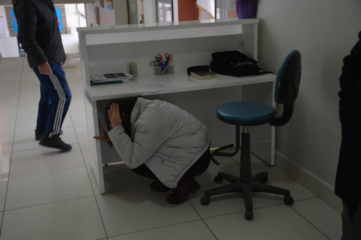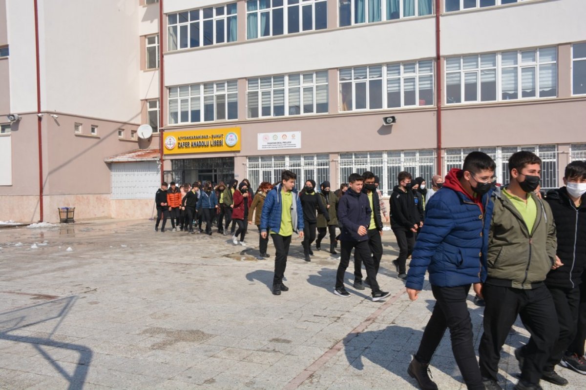 Şuhut Belediye Başkanı Recep Bozkurt İç İşleri Bakanlığı ile Milli Eğitim Bakanlığı arasında yapılan protokol gereğince ve 2022 Yılının Afet ve Tatbikat yılı ilan edilmesi sebebi ile tüm Türkiye’de ve İlçemizde bulunan tüm okullarda gerçekleştirilen deprem tatbikatına katıldı. İlçemiz Zafer Anadolu Lisesi binasında gerçekleşen tatbikata Belediye Başkanı Recep Bozkurt’un yanı sıra İlçe Kaymakamı Lokman Düzgün, İlçe Milli Eğitim Müdürü Hüseyin Eroğlu ve daire amirleri katılım sağladı. Okul sınıf ve koridorlarında öğrencilerin hayatını kurtaracak önlemlerin gösterildiği tatbikat gerçeğini aratmadı. Deprem tatbikatında öğrencilere ilk dakikaların önemi ve depremde yapılması gerekenler anlatıldı. “Deprem ve Tahliye Tatbikatı” senaryosuna göre depreme dersliklerinde yakalanan öğrenciler, uyarı sirenlerinin çalması üzerine daha önceden kendilerine öğretildiği gibi sıralarının yanlarına siper alarak çök-kapan-tutun yöntemi ile ‘Hayat Üçgeni’ oluşturdular. Sarsıntının geçmesi ile birlikte okul görevlileri tarafından izdihama yer vermeyecek şekilde bina dışına tahliye edilerek, öğrenciler, öğretmenler ve personel “Toplanma Alanı’nda” toplandılar. Başarıyla gerçekleştirilen tatbikatın her anını öğrenciler ile birlikte uygulayarak yaşayan Başkan Bozkurt konu ile ilgili yaptığı açıklamada; “
