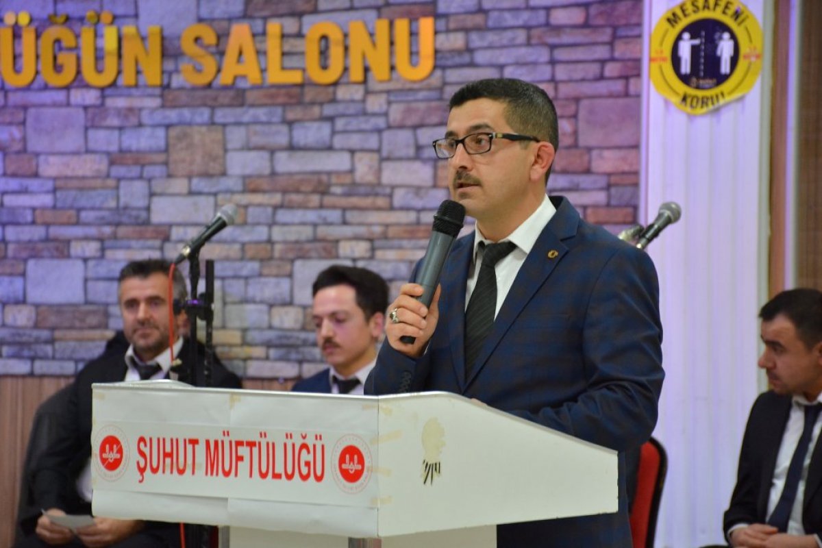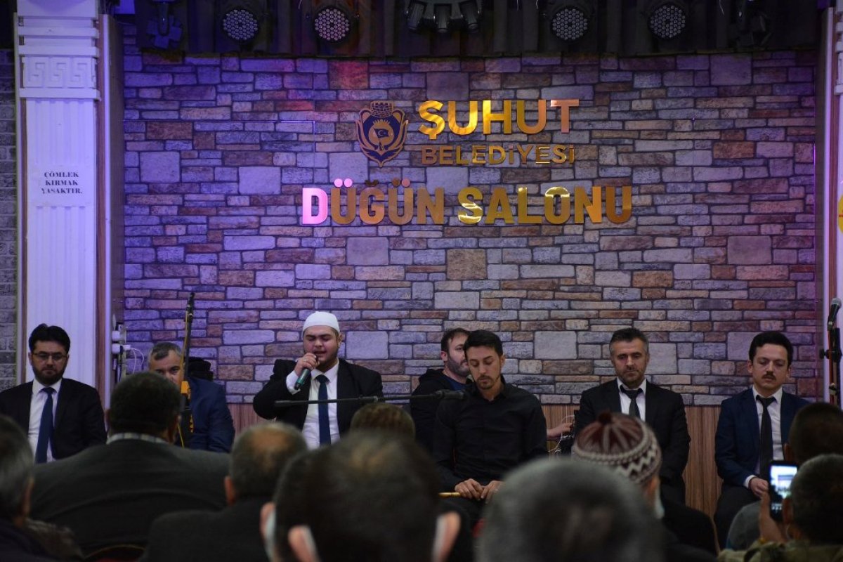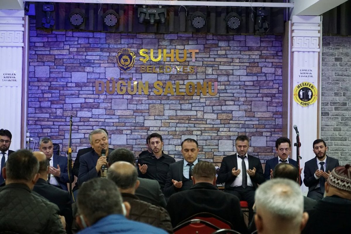 Şuhut Belediye Başkanı Recep Bozkurt Şuhut İlçe Müftülüğü tarafından düzenlenen programa katıldı. Şuhut İlçe Müftülüğü tarafından 3 ayların başlangıcı vesilesi ile Şuhut Belediyesi Düğün Salonunda icra edilen programa, Şuhut Belediye Başkanı Recep Bozkurt'un yanısıra Karaadilli Belediye Başkanı Mesut Ulusoy, İl Genel Meclis Üyesi Gültekin Özdemir, STK yetkilileri, daire amirleri ve yoğun halk katılımıyla gerçekleşen programda Kur'an'ın Kerim Tilavetleri, şiir dinletileri, Şuhut Müftülüğü Tasavvuf Korosundan ezgiler, semazen gösterisi, ney dinletisi ve sohbet programı icra edildi. Başkan Bozkurt program sonrası yaptığı açıklamada; "Bizleri rahmet ve mağfiret iklimi 3 aylara ulaştıran yüce Rabbimize hamd olsun. İlçe Müftülüğümüzün Şuhut Belediyesi Düğün Salonunda Düzenlediği Programa Katıldık. Bu Güzel Program İçin İlçe Müftümüz Fatih Aytekin Başta Olmak Üzere Emeği Geçen Herkese Teşekkür Ederim." dedi.