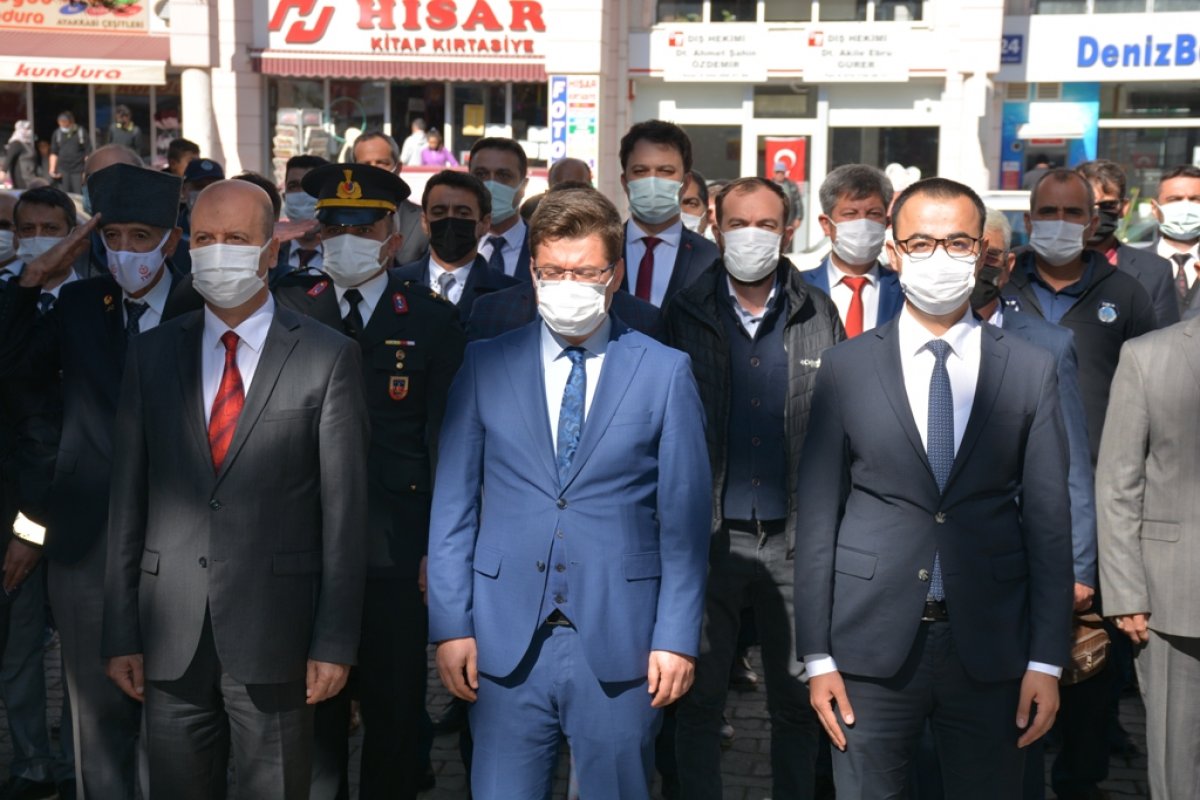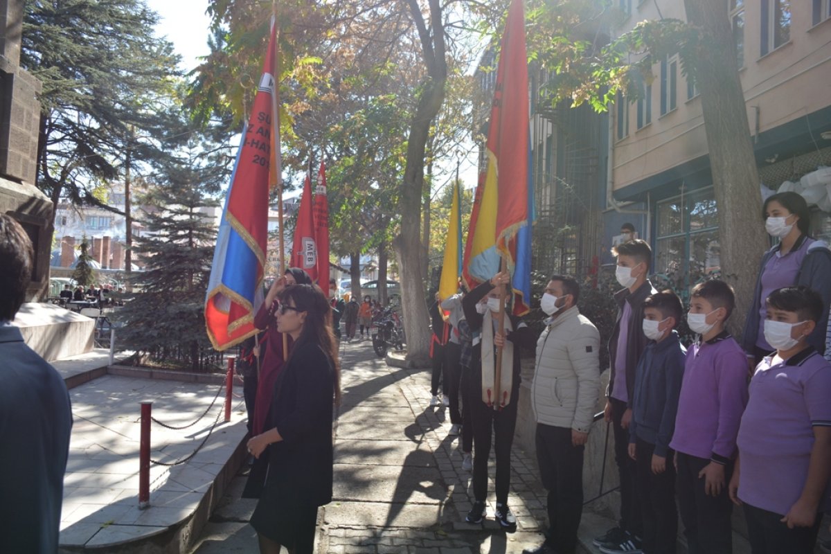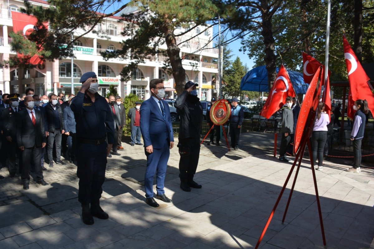29 Ekim Cumhuriyet Bayramı nedeniyle düzenlenen çelenk sunma töreni Gazi Mustafa Kemal Atatürk ile ahirete intikal eden şehitlerimiz ve gazilerimizin anısına durulan bir dakikalık saygı duruşu ve akabinde okunan İstiklal Marşımız ile son buldu.