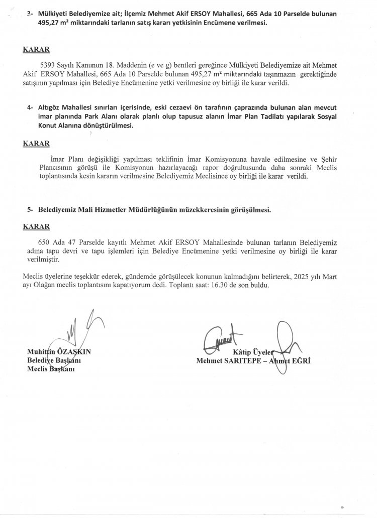 - ŞUHUT BELEDİYE MECLİS TOPLANTISI MART AYI KARAR ÖZETLERİ 08.03.2025 TARİHİNDEN İTİBAREN YAYINLANMIŞTIR