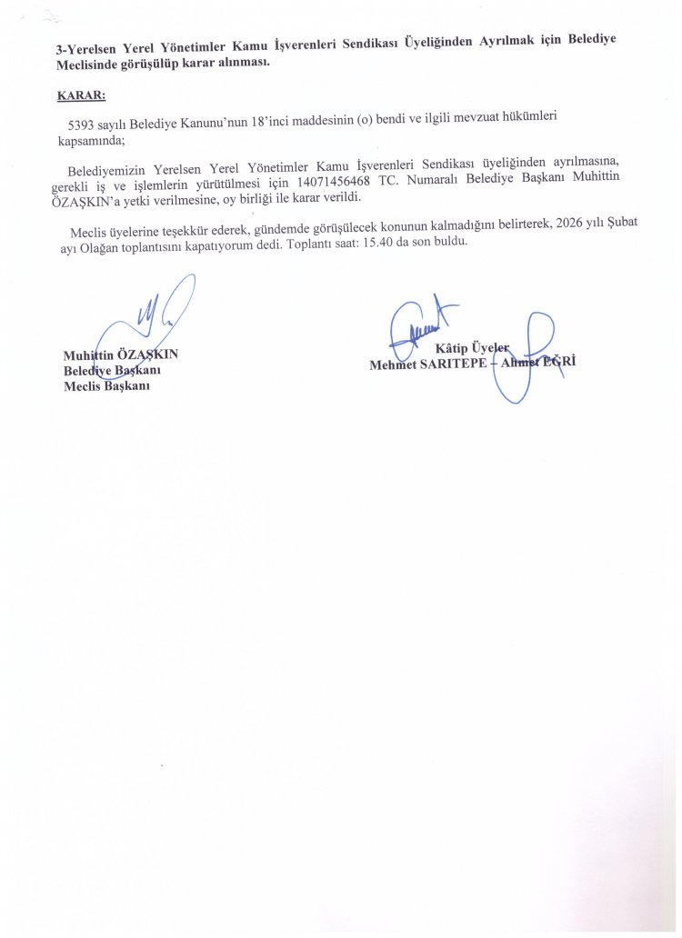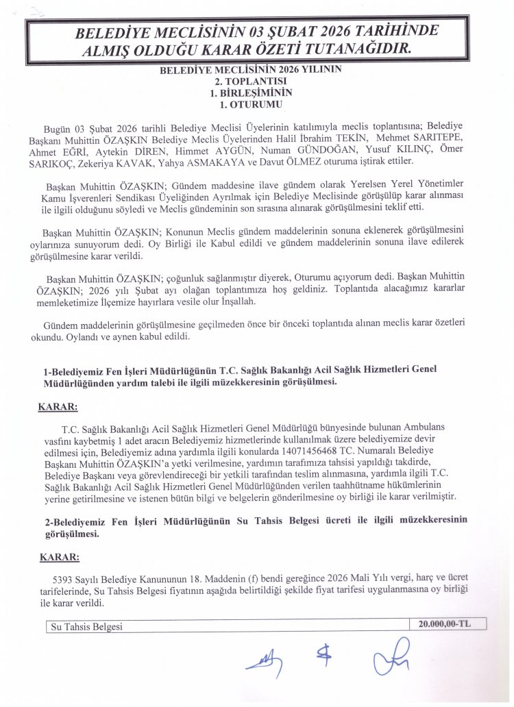 03.02.2026 TARİHLİ MECLİS TOPLANTISI KARAR ÖZETLERİ