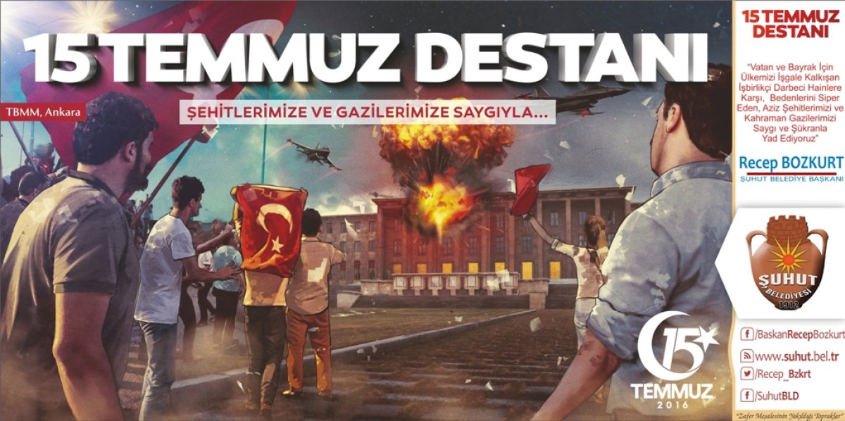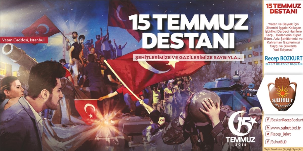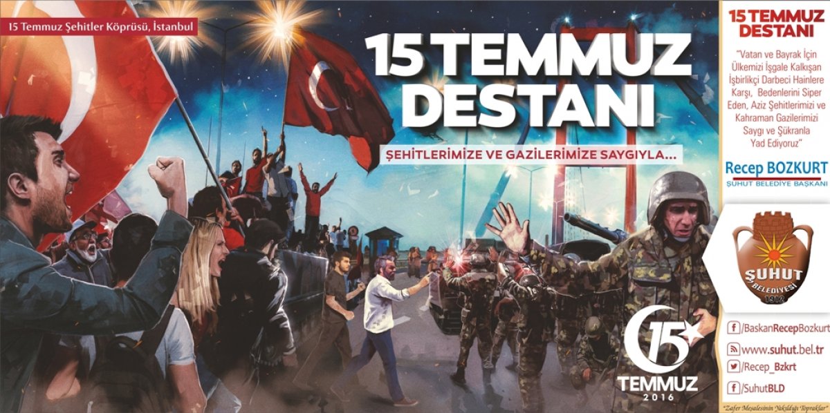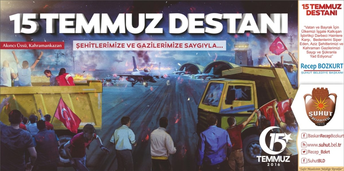 Şuhut Belediye Başkanımız Recep Bozkurt, 15 Temmuz alçak darbe girişimin yıl dönümü münasebetiyle bir mesaj yayınladı. Başkan Bozkurt, Fetöcü hain işbirlikçilerin Ülkemizi işgale hazırlamaya çalıştığını ve bunun aziz milletimizin karşı koymasıyla engellendiğini kaydetti. Başkan Bozkurt, "Hainler uçaklarıyla, tanklarıyla, helikopterleriyle Milletimizin iradesini hedef almış, ülkemizin bölünmez bütünlüğünü hedef almıştı. Hainler sivil vatandaşlarımızı ve vatansever askerlerimizi vahşice şehit ettiler. Cumhurbaşkanımız ve Başkomutanımız Recep Tayyip Erdoğan'ın çağrısıyla meydanları dolduran milyonlarca kahraman Türk milleti hainlere en güzel cevabı vererek darbelerini boşa çıkararak büyük bir kahramanlık örneği gösterdi. Ülkemizi içeriden ve dışarıdan müdahalelere açık hale getirmeyi hedefleyen bu hain girişim Cumhurbaşkanımız ve hükümetimizin dik duruşu tüm siyasi partilerin darbe karşıtı açıklamalarıyla son buldu. O gece cennet vatanımız, mübarek bayrağımız ve aziz milletimizin geleceği için canları pahasına meydanları dolduran tanklara karşı duran, hain kurşunlara kendisini siper eden, vatan için serden geçen 249 vatan evladı hainlerce şehit edildi, 2195 vatan evladı gazilik şerefine ulaştı. Bir kez daha tüm şehitlerimizi minnet ve şükranla anıyor, gazilerimize şükranlarımızı sunuyor ve sağlıklı bir ömür diliyorum" dedi. 15 Temmuz gecesinin Kurtuluş Savaş'ından bir farkı olmadığına değinen Başkan Bozkurt, darbenin başarılı olması halinde Türkiye'nin iç ve dış düşmanlar tarafından işgale açık hale getirilmek istenildiğini vurgulayarak "15 Temmuz Milletimizin Bir destanıdır, Kahramanlığıdır ve Milletimiz binlerce yıllık tarihinde bu hainliğin bir benzerini daha görmemiştir." dedi. Başkan Bozkurt, "Feto denilen alçak kuklanın talimatıyla başlatılan darbe girişiminin hedefi Cumhurbaşkanımız Recep Tayyip Erdoğan, Devletimiz ve Türk Milletiydi. Ancak bu alçak hain ve işbirlikçileri emeline milletimizin dik duruşu ile ulaşamadı. Fetöcü hainlerin hesap etmediği tek şey beşeri planda milletimiz ve onun temsilcisi olan Cumhurbaşkanımızdı" dedi. Başkan Bozkurt, Türkiye'nin darbelerden ve darbecilerden çok çektiğini Ülkemizde her on yılda bir darbe yapıldığını ancak 15 Temmuz'da millet tarafında hainlere darbe vurulduğunun altını çizdi. Dünyanın en kanlı darbe girişiminin 15 Temmuz'da yaşandığına dikkat çeken Başkan Bozkurt, O hain gecenin unutulmasının mümkün olmadığını, o gece Şuhut meydanlarını Cumhurbaşkanımızın çağrıyla dolduran binlerce Şuhutluya da teşekkür ederek, "O gece cesaretiyle, metanetiyle büyük bir kahramanlık destanı yazan Şuhutlu hemşehrilerimize ve aziz milletimize ne kadar teşekkür etsek az gelir" dedi. Başkan Bozkurt mesajında "Bu duygularla 15 Temmuzu ve o gece yaşananları asla unutmayacak, unutturmayacağız. Vesile ile tüm şehitlerimize bir kez daha Allah'tan rahmet, kederli ailelerine ve milletimize başsağlığı, gazilerimize sağlıklı ve hayırlı ömürler diliyorum" dedi. Başkan Bozkurt, son olarak 15 Temmuz Cumartesi günü ilçemiz meydanında gerçekleştirilecek anma etkinlikleri ve 15 Temmuz Demokrasi nöbeti nedeniyle Tüm Şuhut halkını meydanlara davet etti. [gallery link="file" ids="11879,11880,11881,11882,11883,11884,5344"]