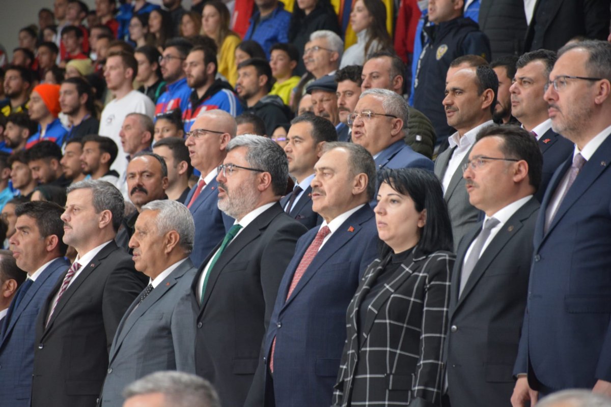 Bakan Kasapoğlu, Afyonkarahisar’da gerçekleştirilen 131 üniversitenin 10 branşta mücadele ettiği Üniversite Ligi (ÜNİLİG) açılış törenine katıldı. Prof. Dr. Veysel Eroğlu Spor Salonu’nda gerçekleştirilen törene Bakan Kasapoğlu’nun yanı sıra Vali Gökmen Çiçek, milletvekilleri, protokol üyeleri ve çoğunluğu gençlerden oluşan vatandaşlar katıldı. Program çeşitli branşlarda mücadele eden ÜNİLİG sporcularının yaptığı geçiş töreni ile başladı. Öğrencilerin rengarenk kıyafetler içerisinde yaptığı geçiş töreni katılımcılar tarafından ayakta alkışlandı.