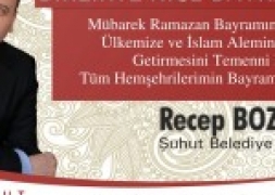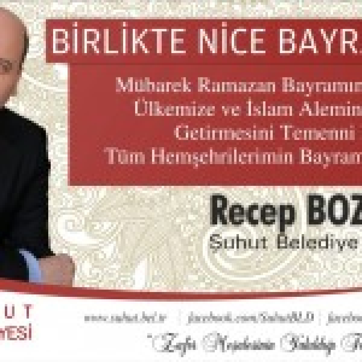 Şuhut Belediye Başkanımız Recep Bozkurt, Ramazan Bayramı dolayısıyla bir mesaj yayınladı. Başkan Bozkurt mesajında şu sözlere yer verdi;