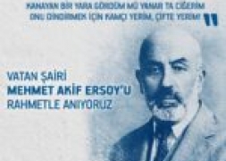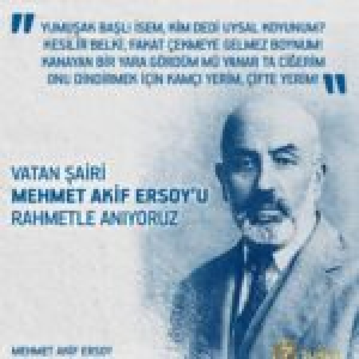 Bu duygu ve düşüncelerle; gönül coğrafyamızın mümtaz kişiliği ve en önemli şairimiz Mehmet Akif Ersoy’u vefatının 85’inci yıl dönümünde bir kez daha minnetle yâd ediyor, şahsında ahirete irtihal etmiş tüm manevi değerlerimize şükranlarımı sunuyorum.” İfadelerine yer verdi.
