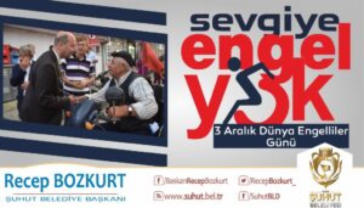 Şuhut Belediye Başkanı Recep Bozkurt 3 Aralık Dünya Engelliler günü nedeniyle bir mesaj yayımladı.