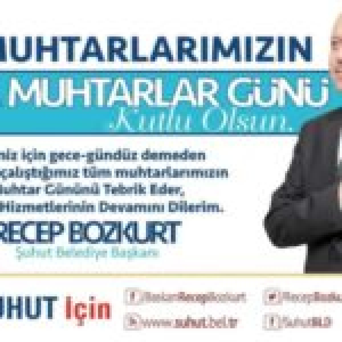 Belediye Başkanımız Recep Bozkurt , 19 Ekim Muhtarlar Günü dolayısıyla bir mesaj yayımladı.