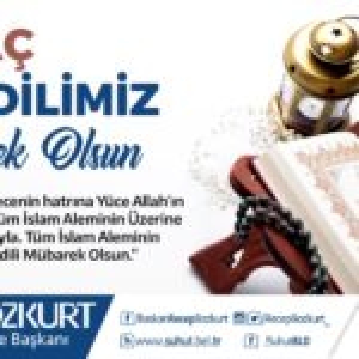 Başkan Bozkurt mesajında''Bu güzel gecelerin feyzi üzerimize, rahmeti geçmişinize, bereketi evinize, nuru ahiretinize, sıcaklığı yuvanıza dolsun. Miraç Kandilimiz mübarek olsun.